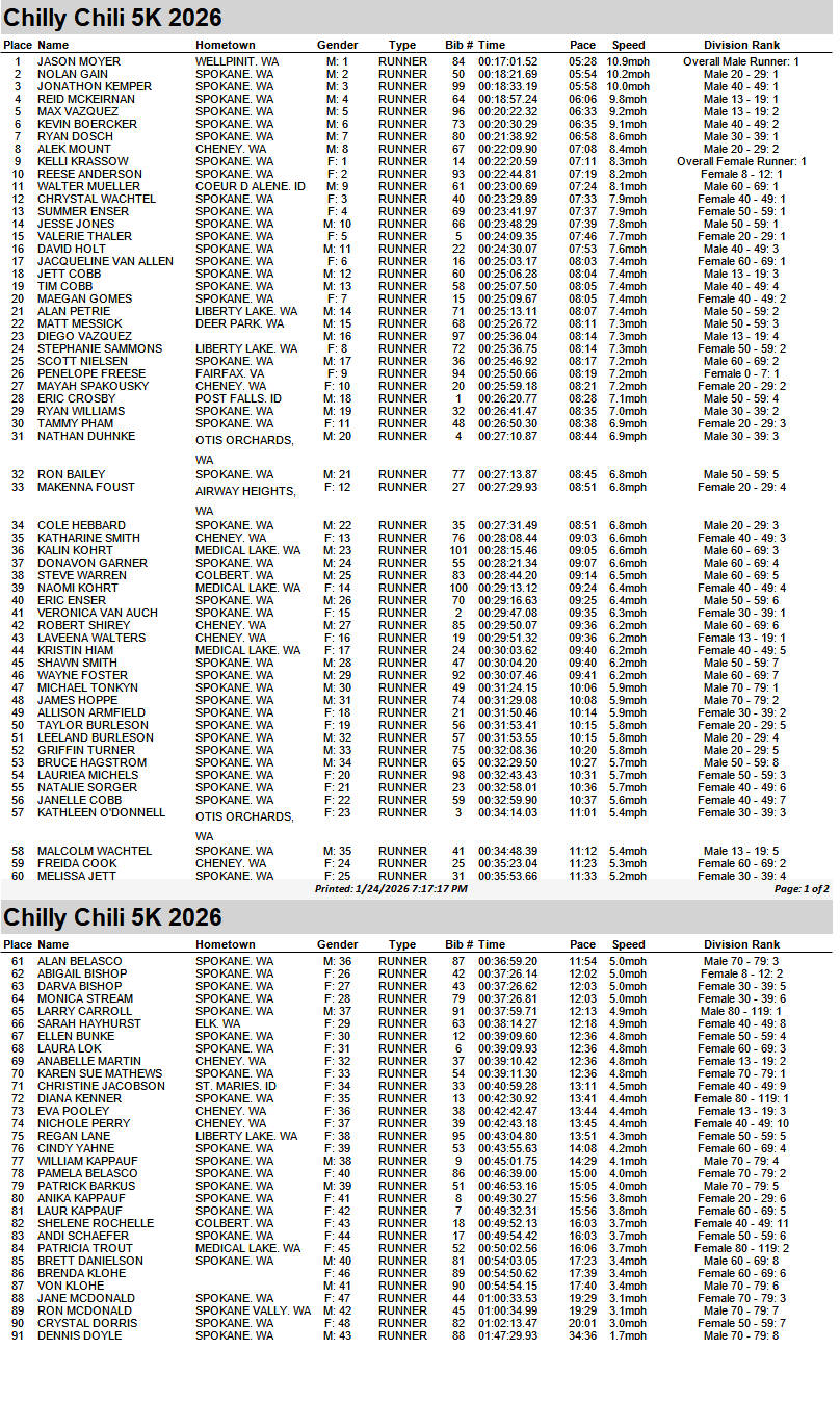 Chilly Chili 5K Run